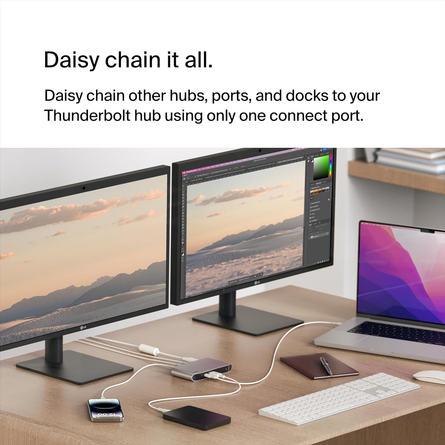 BROAD COMPATIBILITY W/ OVERCURRENT PROTECTION: Connect to USB-C devices such as iPad, MacBook, Chromebook, and PC laptop. Plus, this Thunderbolt 4 certified and USB4 compliant hub keeps all your devices safe with overcurrent protection.