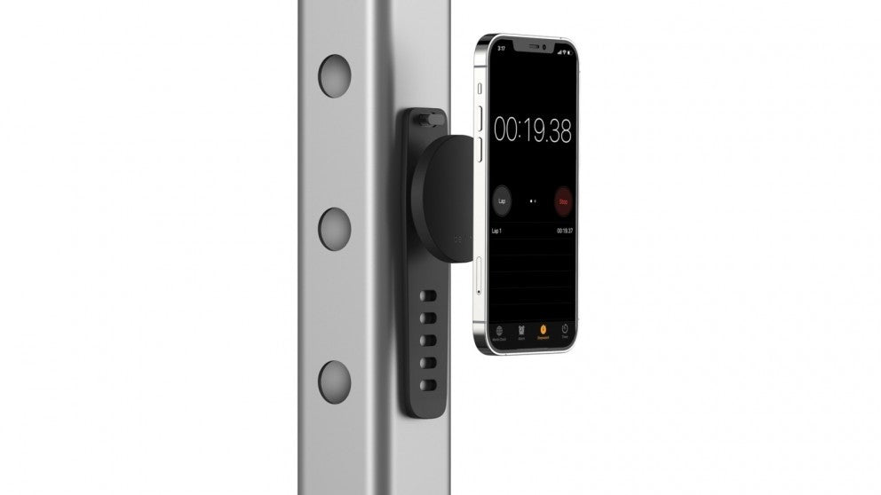 With its dual magnet configuration, the Belkin Magnetic MagSafe Compatible Fitness Mount uses its front MagSafe compatible mounting setup to hold your iPhone while the rear magnet attaches to any magnetic surface on your gym equipment.
