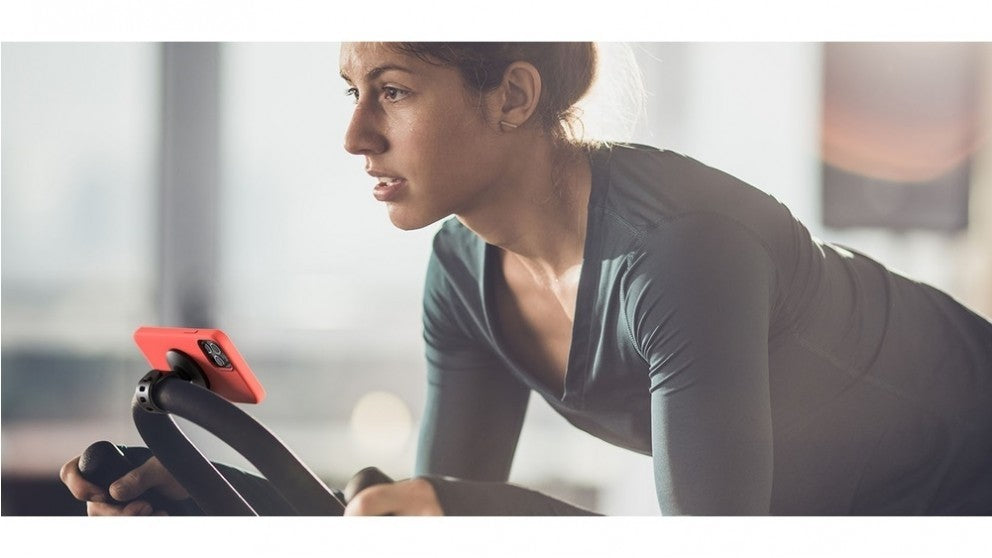 Conveniently and securely attach your iPhone 12 (sold separately) onto various types of gym equipment and easily view content from different angles with the Belkin Magnetic MagSafe Compatible Fitness Mount.