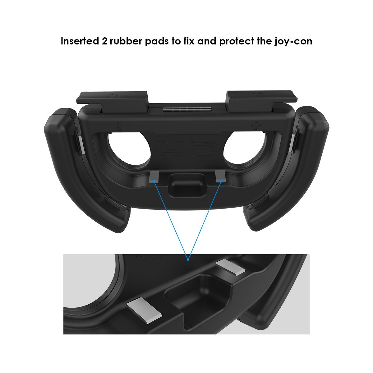 Inserted rubber pads make the joy con grips not shake off or slide, Nice solid build for easy insert and remove. The good material protects your Joy-Con controllers from everyday wear and tear, bumps and scrapes.