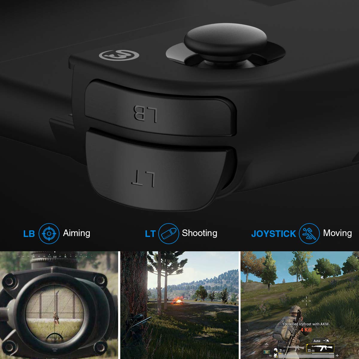 Unique Design: LT button for shooting, LB button for aiming, joystick for moving and sprinting. Stretchable design makes it small and easy to carry. Not only a wireless gamepad, but also a smartphone grip.