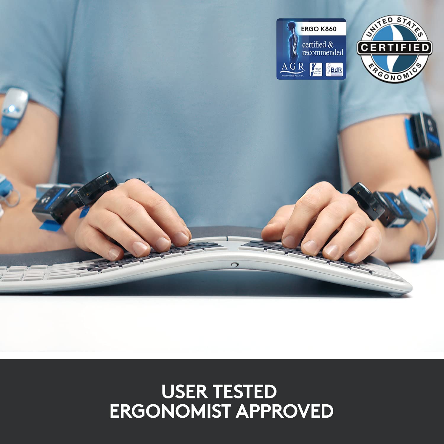 - Ergonomist Approved: The ERGO K860 wireless ergonomic keyboard is certified by United States Ergonomics to improve posture and lower muscle strain