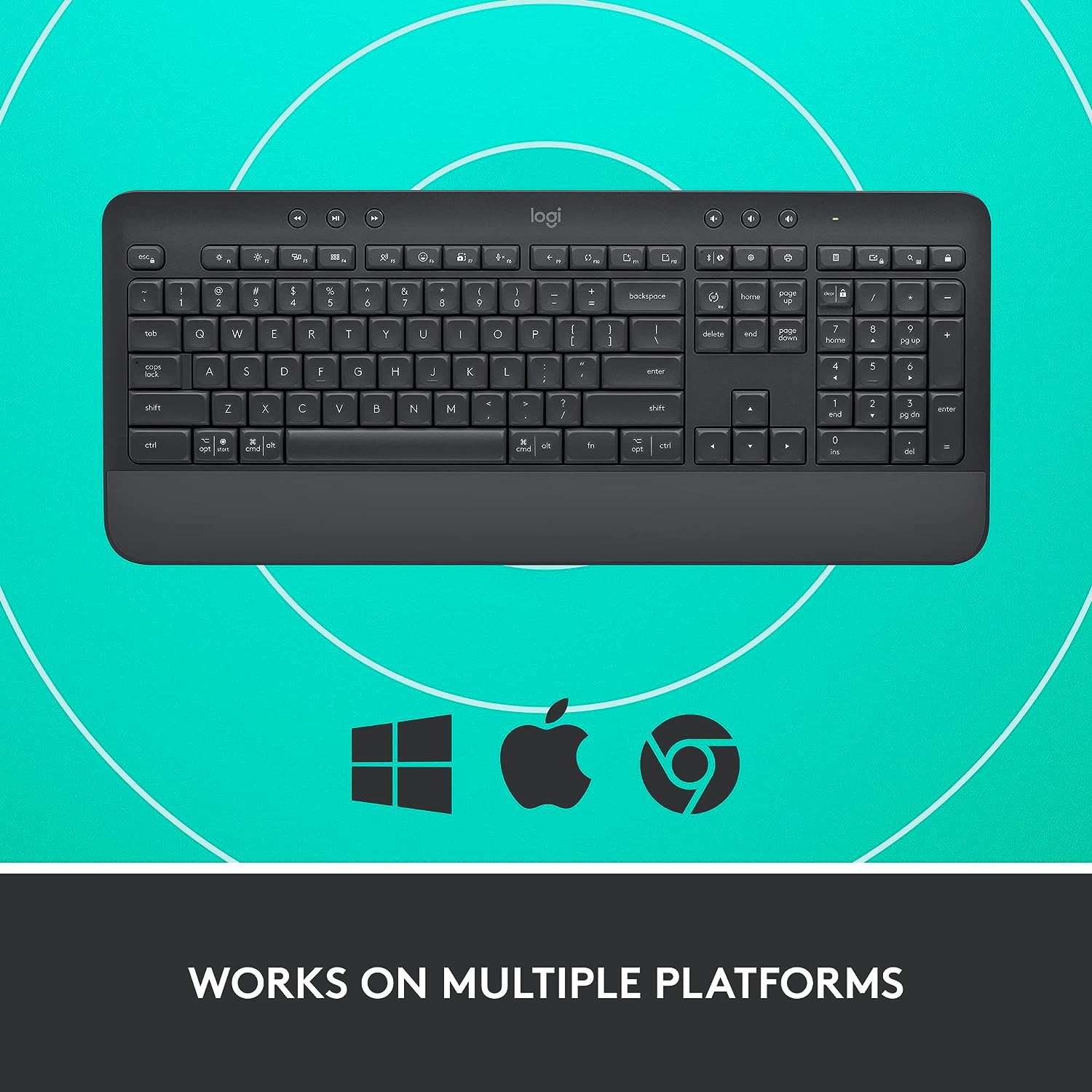Works on Multiple Platforms: Signature K650 Logitech Wireless Keyboard works with multiple operating systems—Windows, macOS, Chrome OS, Linux, iPadOS, iOS and Android