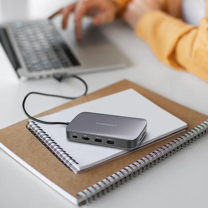 Powerology USB-C Hub & SSD Drive 256GB PD 100W - Gray